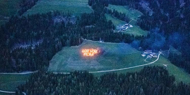 On the night of 2nd May 2020, a number of slogans such as ‘Away from Rome‘ were written with fire on the side of the mountains in South Tyrol in what seems to be criticism by right-wing separatist supporters, against the centralisation of COVID-19 regulations by the Italian government.